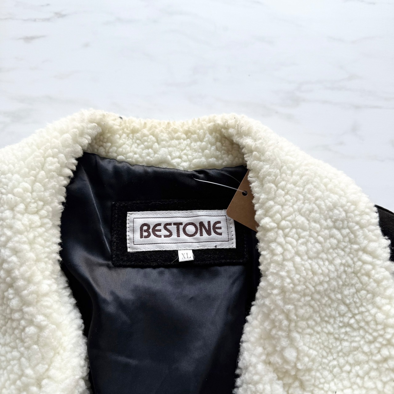 ボア襟周りに薄い色褪せがあります。