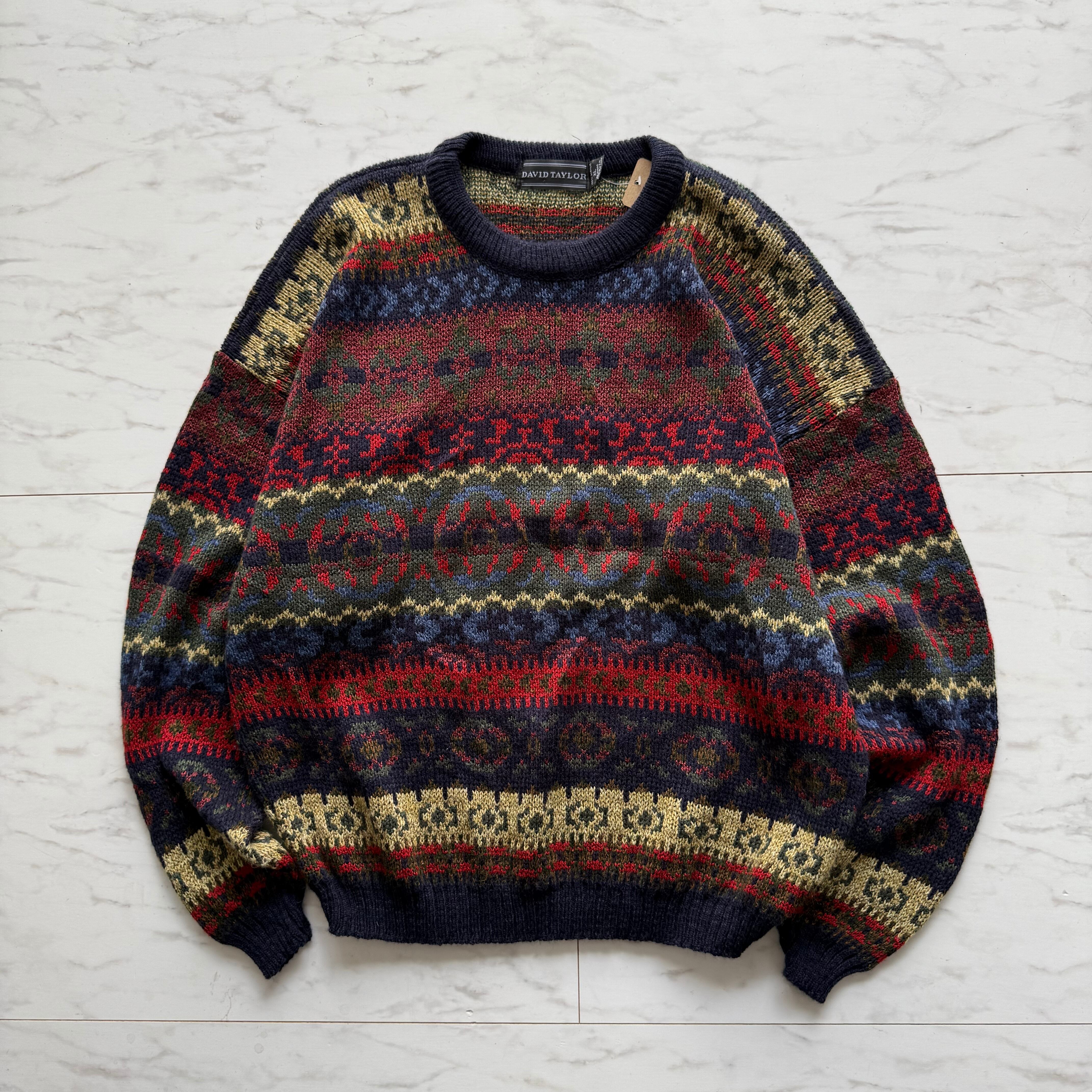 80s~90s USA製 DAVID TAYLOR design Knit men'sXL