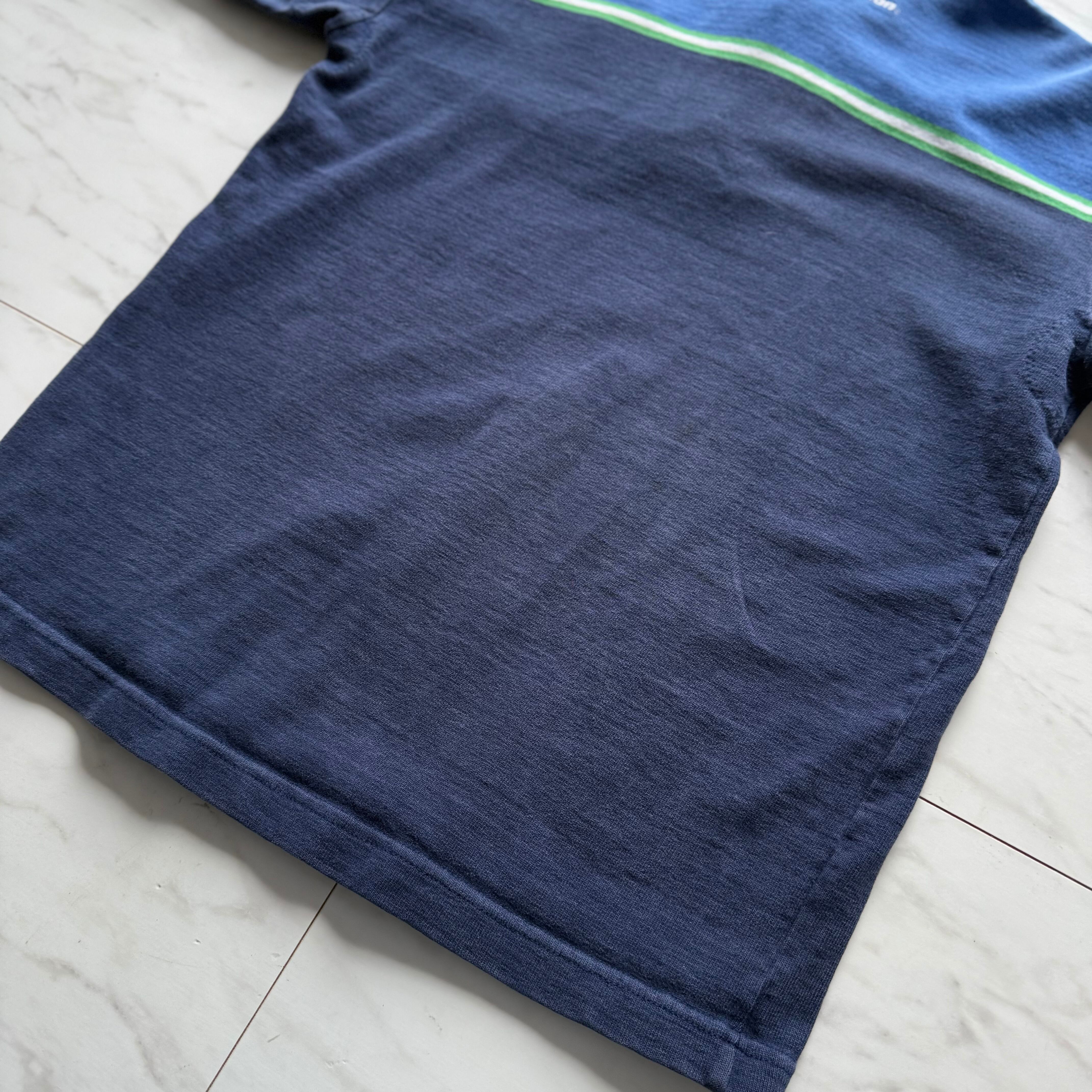 ネイビー部分に薄い色褪せなど、多少の使用感があります。
