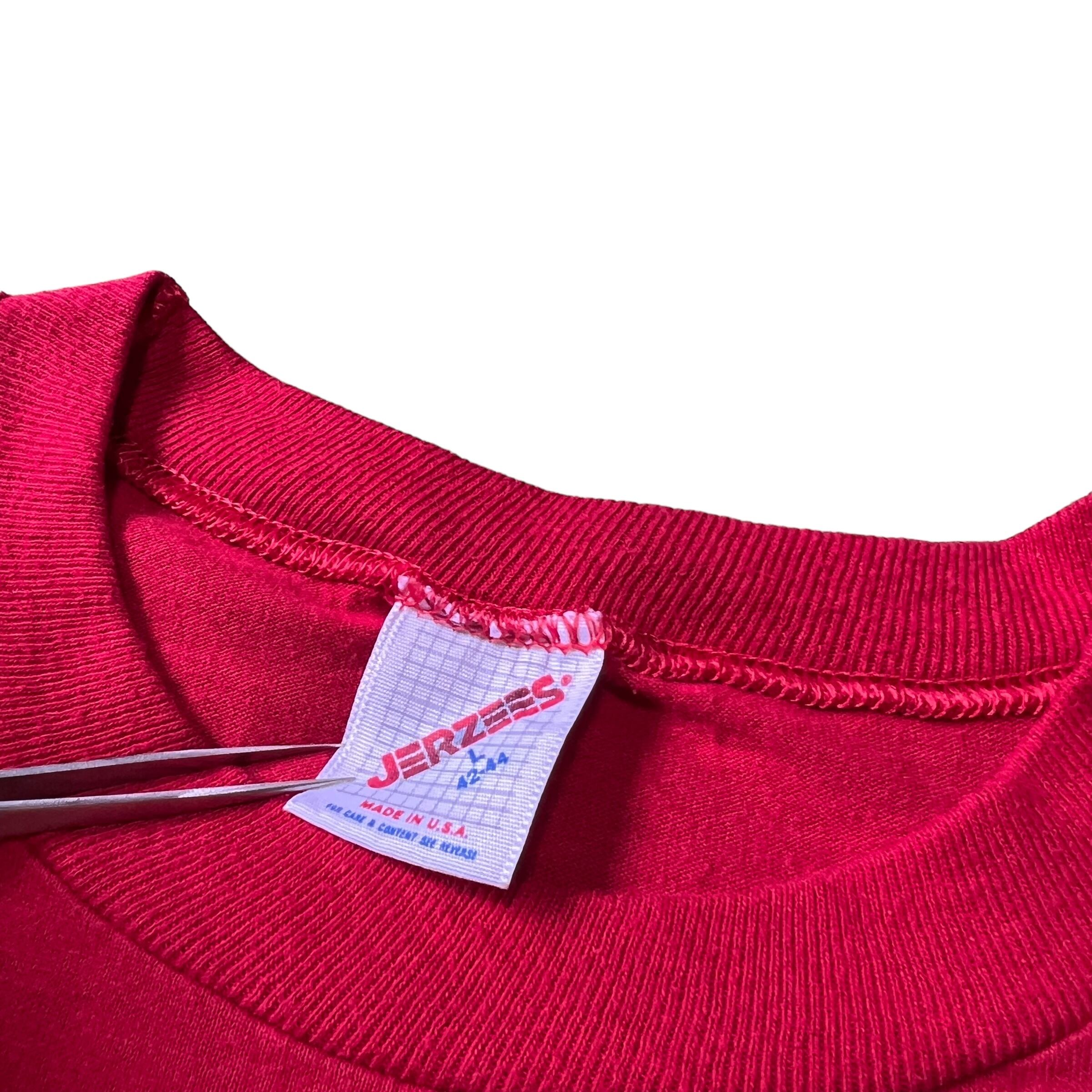i4/1990s JERZEES USA製 single stitch T-shirt red color men'sL