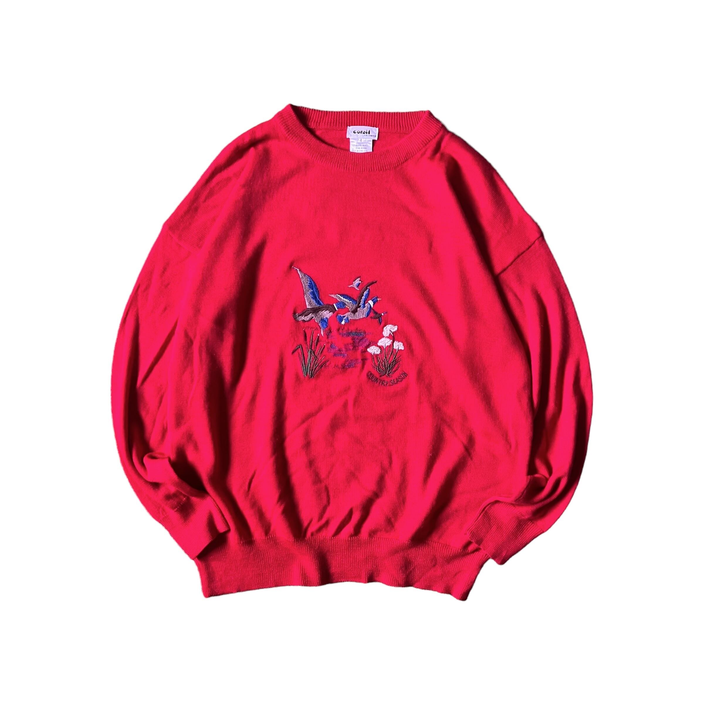 i7/coral animal knit sweater red color men's4(XL相当)